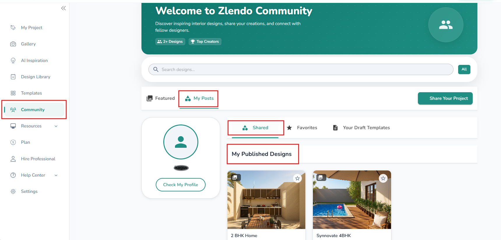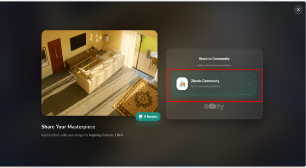 You can create your own design template from your project renders and share it on Zlendo Realty Community as a Post.