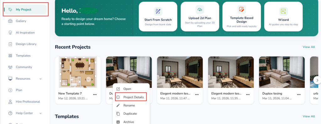 – You will be redirected to the Recent Projects section on the Dashboard.